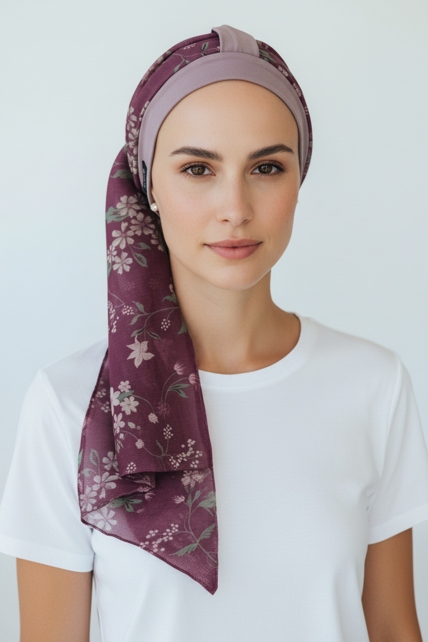 O design intuitivo permite que você coloque e ajuste o turbante e o lenço rapidamente, sem dificuldade.