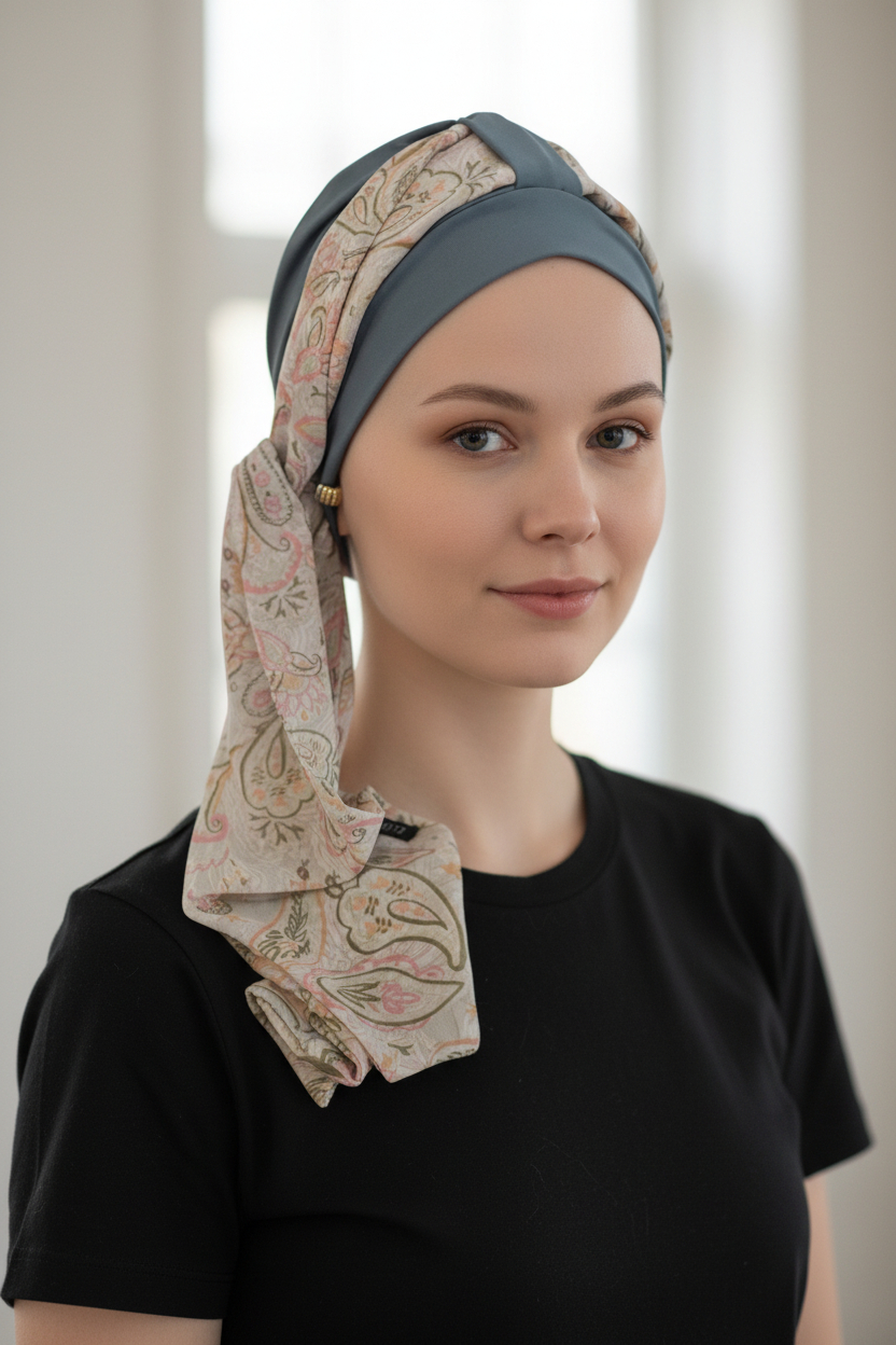 O design intuitivo permite que você coloque e ajuste o turbante e o lenço rapidamente, sem dificuldade.