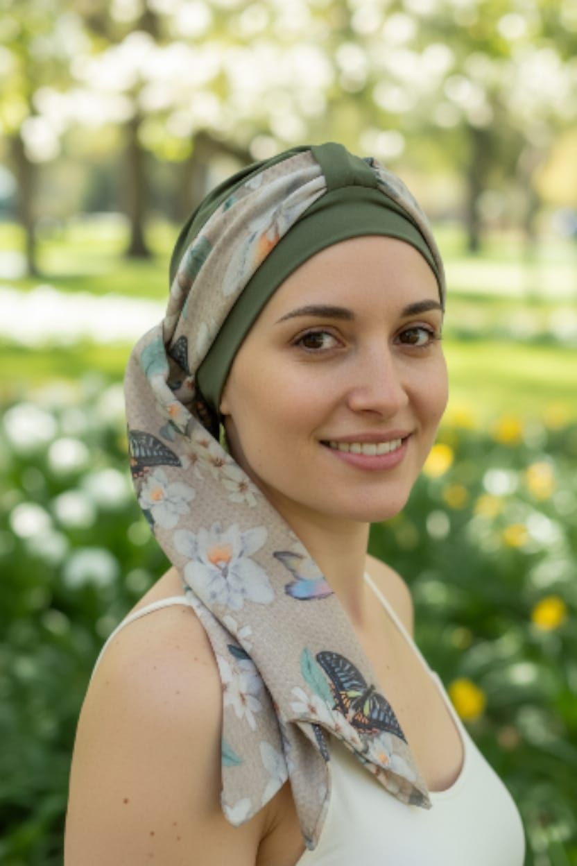 Turbante Aatma Verde Liso UV 50+ com Lenço Borboleta Encanto