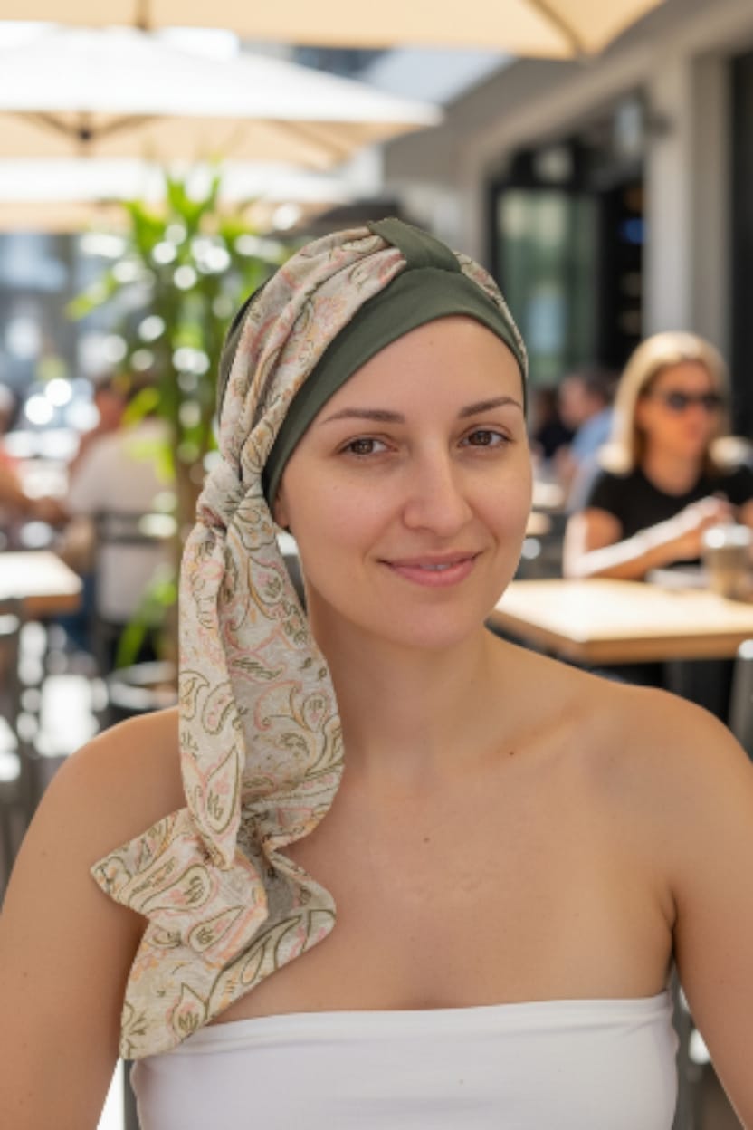 Turbante Aatma Verde Liso UV 50+ com Lenço Jardim Suave