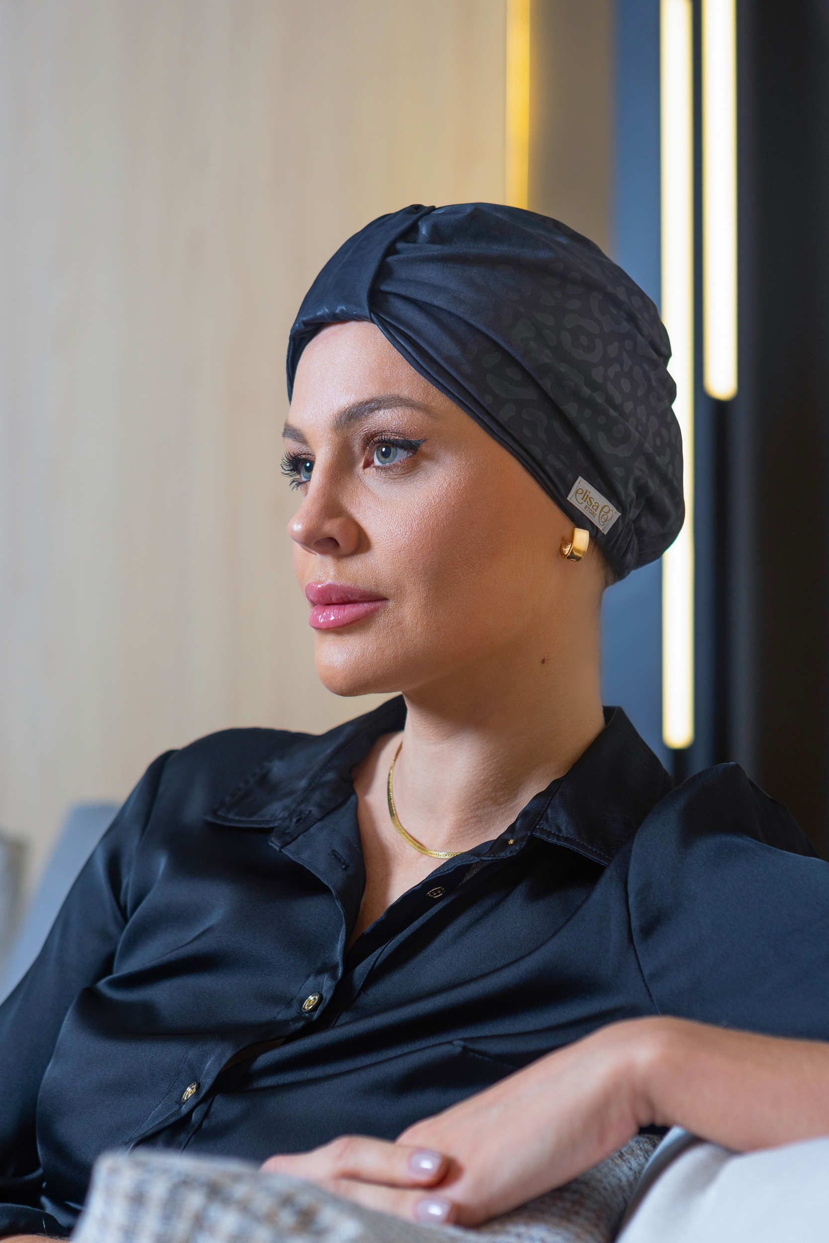 O design é limpo e refinado para garantir uma experiência confortável, as costuras são cuidadosamente acabadas para não causar irritação ou lesões nas áreas sensíveis, além disso este turbante é composto de forro interno que proporciona uma camada adicional de conforto e proteção para o couro cabeludo.